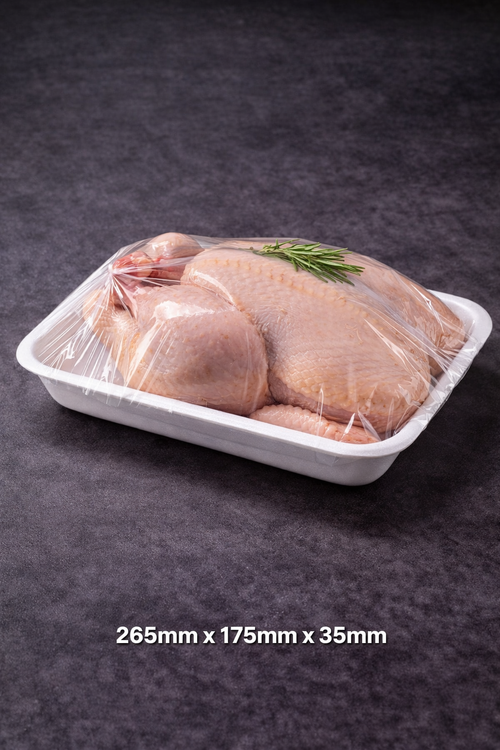 Base de boite en PP pour poulet grille, resistante et adaptee au transport alimentaire.